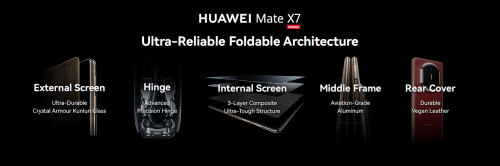 Some foldable phones make you cautious, but the HUAWEI Mate X7 makes you confident. At just 4.5mm when unfolded and 9.5mm when folded, it slips effortlessly into your pocket or your bag. Heading straight to dinner from work? Slide the phone neatly into your blazer. This ultra-slim design doesn’t mean fragile, though. Engineered with an industry-unique structure that uses aerospace-grade materials across its inner and outer screens, hinge, and frame, the HUAWEI Mate X7 is designed to handle the realities of daily life — from the multiple folding and unfolding to accidental drops.